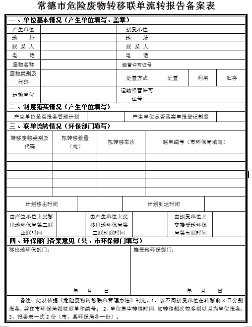 3、常德市危险废物转移联单流转报告备案表