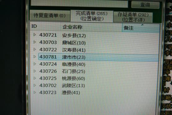 此次空间遥感核实工作时间紧、任务重、技术要求高,我局接到通知后,立即按照国家和省厅要求展开核实工作,克服了人员、技术、硬件等各方面的困难,对照环保部下发的全市485家土壤污染行业企业名单和拟纳入土壤污染状况详查范围的问题突出区域的名单,按照区域逐一分理转发给各区县(市)局,通过查阅历史资料、在线查询、实地走访等方式对辖区土壤污染重点行业企业的名称、位置、规模、是否在产或已经关闭搬迁等信息进行了摸底调查,并补充遗漏的重点行业企业、集聚区及工业园区相关信息,包括违法违规建设项目信息等。特别是武陵、临澧在时间紧、任务重,企业区域位置、名称变更大的情况下按时按质完成任务,津市、石门、桃源等单位高度重视,领导亲自带队组织遥感核实工作,在规定时间内高标准完成任务。全市经过核查一共查实土壤污染重点行业企业265家(其中重点问题突出区域行业企业72家),存疑待查行业企业292家,按时按质完成了此次土壤污染重点行业企业空间位置遥感核实工作。