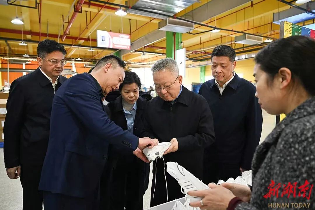 3月18日,沈晓明在安乡站成智造体育科技有限公司调研。