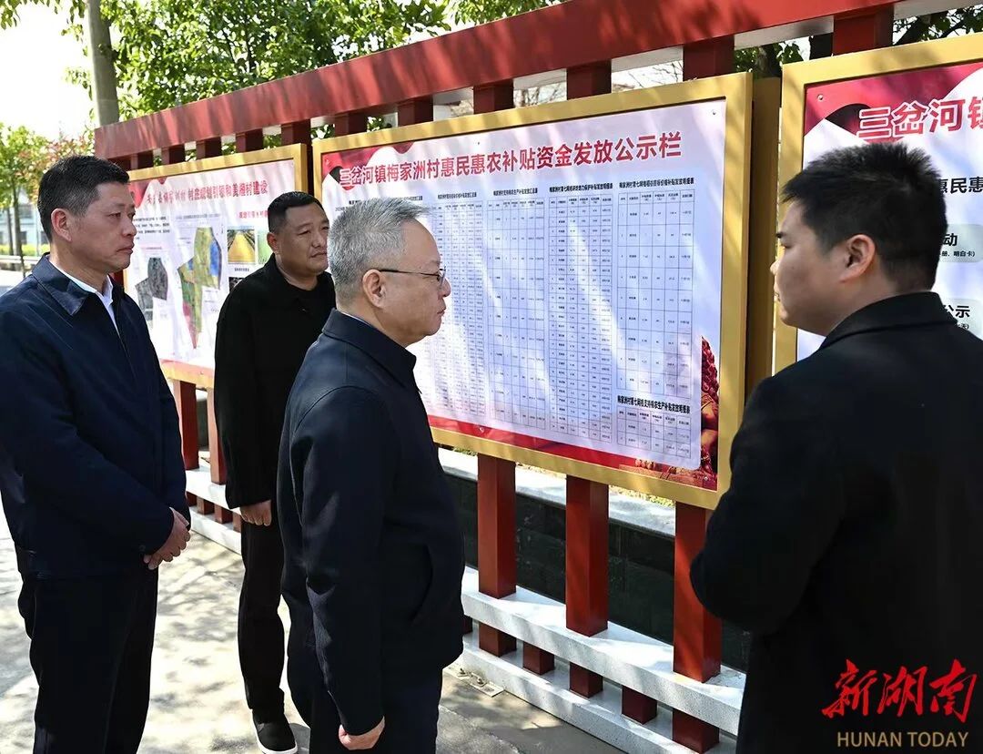 在三岔河镇梅家洲村,沈晓明听取安乡县违规套取惠农补贴整改情况介绍,并走到村农资服务中心和田头,察看春耕物资准备和备耕情况。他强调,要深刻汲取教训,进一步规范惠农补贴资金管理使用,兜牢基层“三保”底线,切实维护农民群众切身利益。
