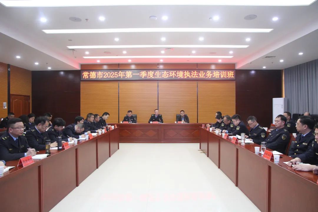 3月24日上午,常德市生态环境局2025年第一季度生态环境执法业务培训开班仪式在局二楼视频会议室隆重举行。省生态环境厅执法局副局长管晟,市生态环境局党组成员、副局长张星瑜出席开班仪式,市生态环境综合行政执法支队支队长赵晋弘主持仪式。