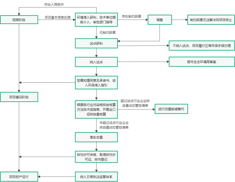 答:试点期间,企业确定主要生产设施设备、污染治理设施及排放口设置后,开展排污许可证申报或排污登记。排污许可证申报流程中,需根据《常德经济技术开发区试点行业固定污染源污染物排放量核算及管理办法》开展项目总量核算,明确项目总量来源,办理排污权证,并在发生实际排污行为前依法取得排污许可证或填报排污登记。