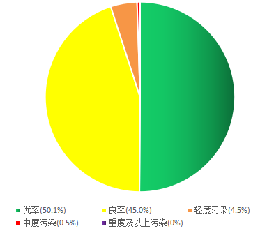 大气方面,市城区优良天数312天、同比增加2天,优良率85.5%、超目标值(83%)2.5个百分点;综合指数3.65,在全国168个重点城市中排第45位;PM2.5、PM10平均浓度分别为41ug/m3、51ug/m3;纳入省考核的7个县市空气质量均达到二级标准。