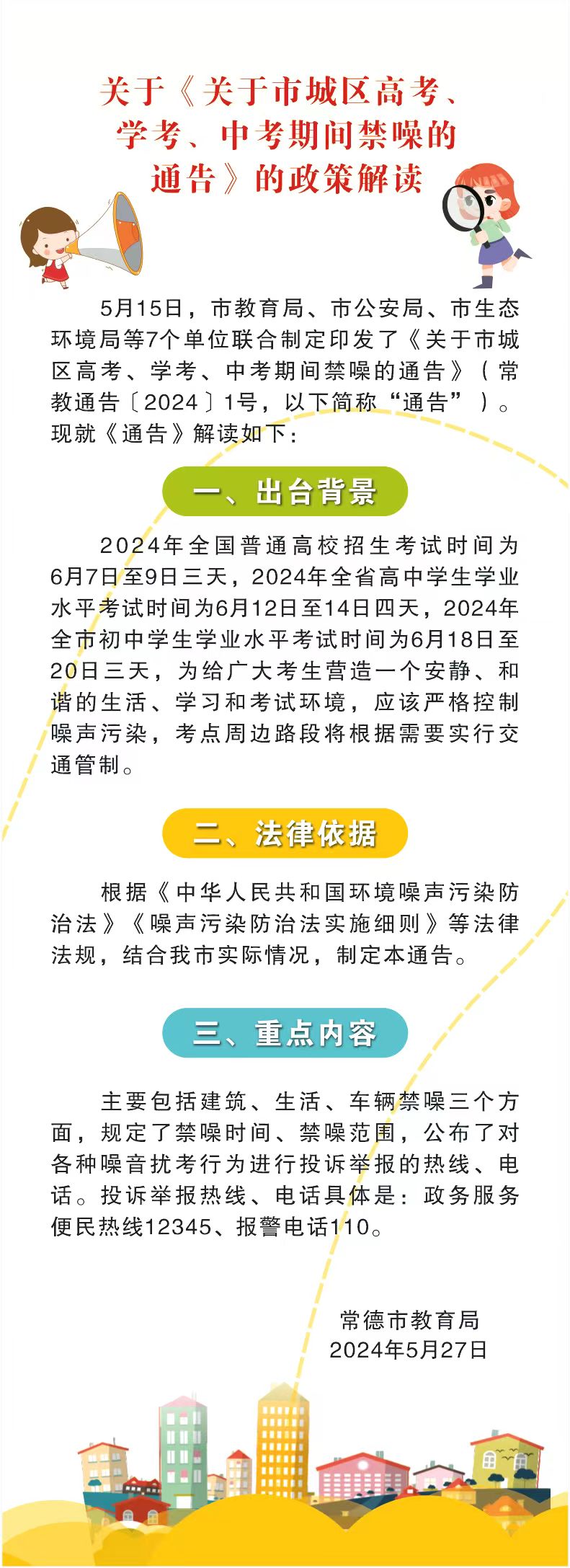 图文解读:常德市教育局关于《关于市城区高考、学考、中考期间禁噪的通告》的政策解读